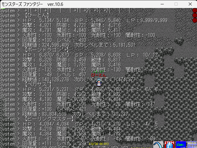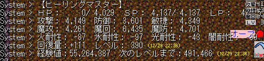 1時間あたりの経験値効率は魔界で1.9M、W8で2.2Mくらい。経験値効率が高いとはいえ、その代償として生命周回が増えることを考えると大人しく魔界~ラスダンあたりが妥当っぽいですね。まぁ、それに気づいたのはかなり後になるわけですが……